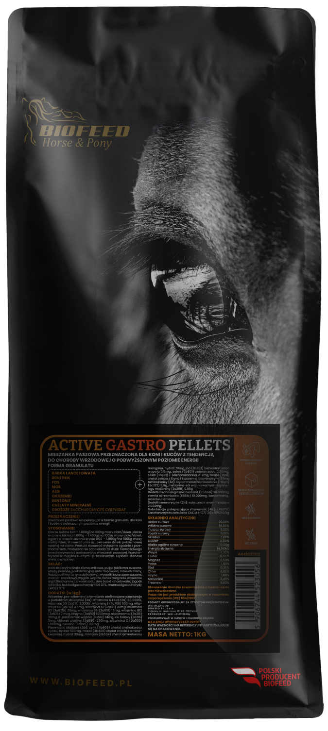 - mieszanka paszowa uzupełniająca dla koni i kuców w intensywnym treningu o wysokim poziomie energii i białka oraz ze składnikami wspierającymi układ pokarmowy